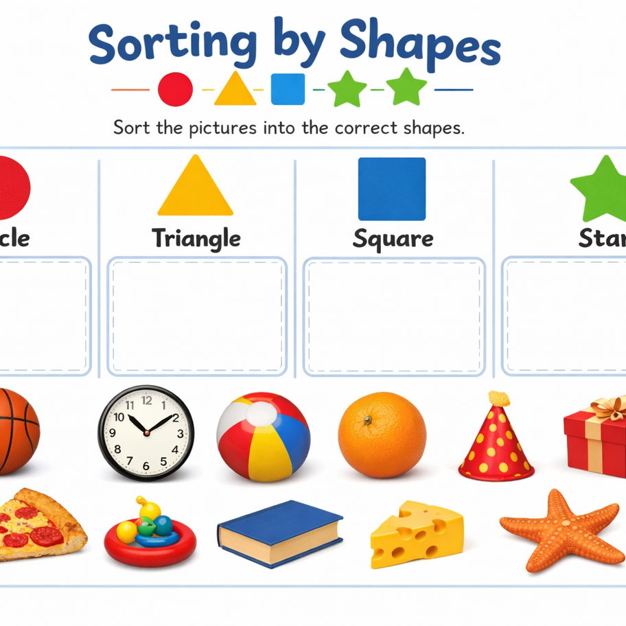 Introducing our Sorting by Shapes activity, perfect for children in Kindergarten who are learning about basic shapes. This hands-on learning tool allows young students to practice their shape recognition and sorting skills in a fun and engaging way. The set includes a variety of shapes such as squares, circles, triangles, and rectangles, along with sorting mats to categorize the shapes. This activity is not only educational, but also helps to develop fine motor skills and critical thinking as children work to match each shape to its corresponding mat. With bright, colorful shapes and easy-to-use mats, this Sorting by Shapes activity is a must-have for early childhood educators and parents looking to support their child's learning at home.